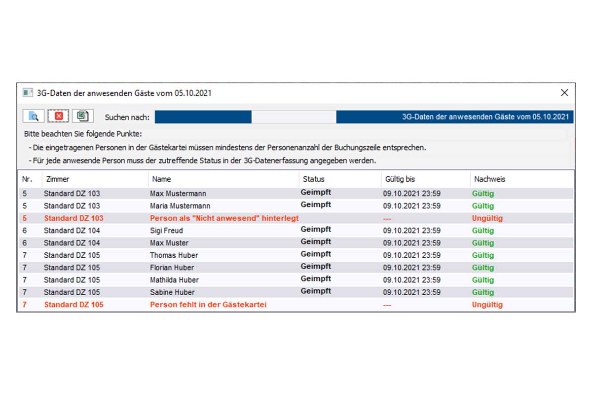 Ab der Version 6.69 ist es möglich direkt in der Gästekartei den 3G-Status Ihrer anwesenden Gäste zu erfassen. Zusätzlich wurden die Listen- und Auswertung um eine Übersicht erweitert, die Ihnen einen genauen Überblick über den aktuellen Status und die Gültigkeitsdauer der erbrachten 3G-Nachweise Ihrer Gäste gibt.
